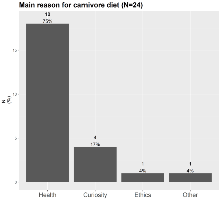 «Кінцевою мотивацією спробувати м’ясоїдну дієту було моє аутоімунне захворювання, тому що я вже понад вісім років пробую все можливе, щоб позбутися псоріазу та запалення; і нічого не допомагає, як би я не харчувався... І це просто мало для мене сенс... І я одразу досяг успіху, бо мій перукар бачить це, він завжди запитує мене про це: «А, твоя шкіра сьогодні краща, така гарна. Твоя шкіра ніколи такою не була»... І я харчувався так лише три тижні». (P3, чоловік, 38 років)