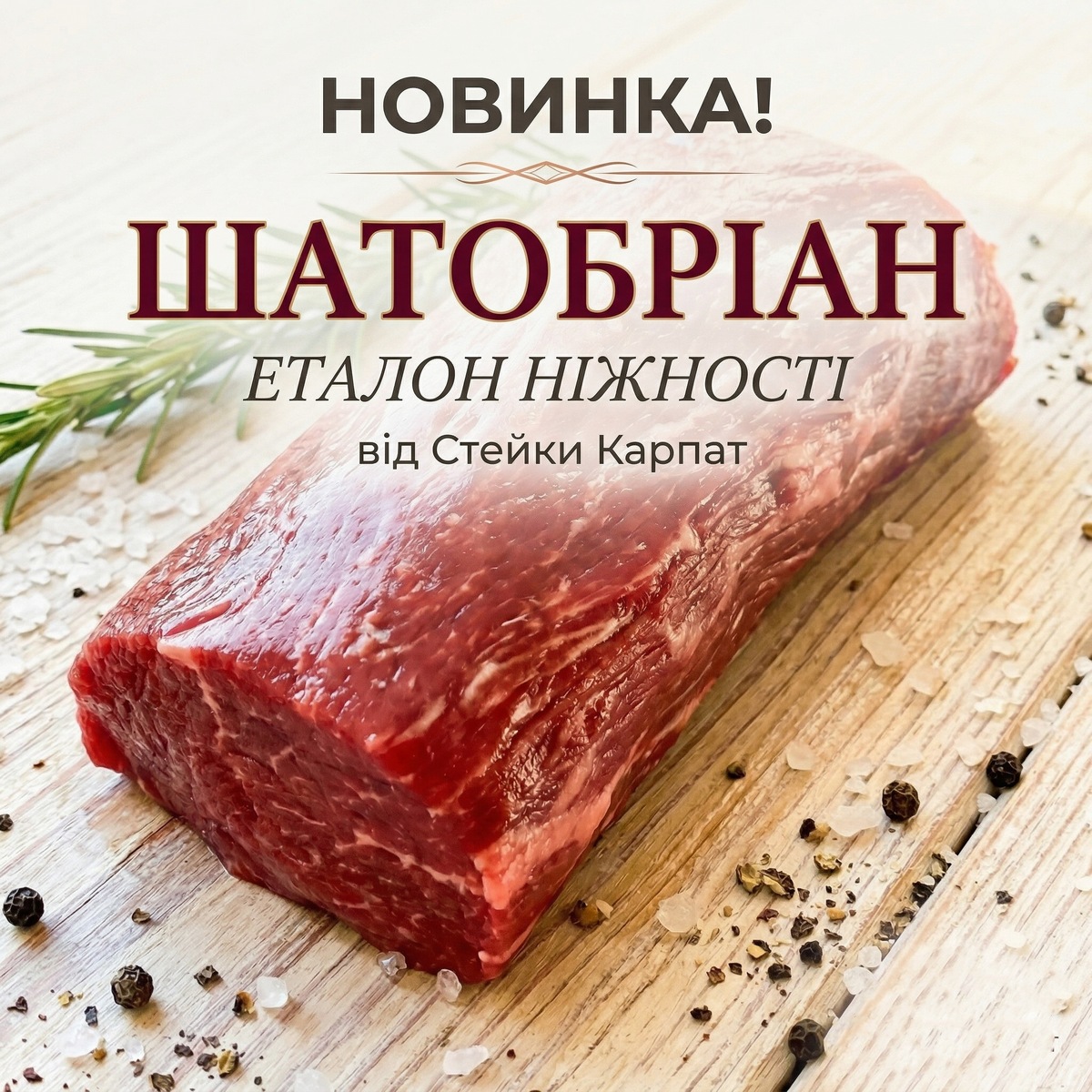 Ми постійно працюємо над тим, щоб ви могли насолоджуватися найкращими м'ясними делікатесами не виходячи з дому. Сьогодні ми раді анонсувати довгоочікуване поповнення нашого асортименту. Тепер для замовлення доступна справжня зірка преміальних стейкхаусів — стейк Шатобріан.
