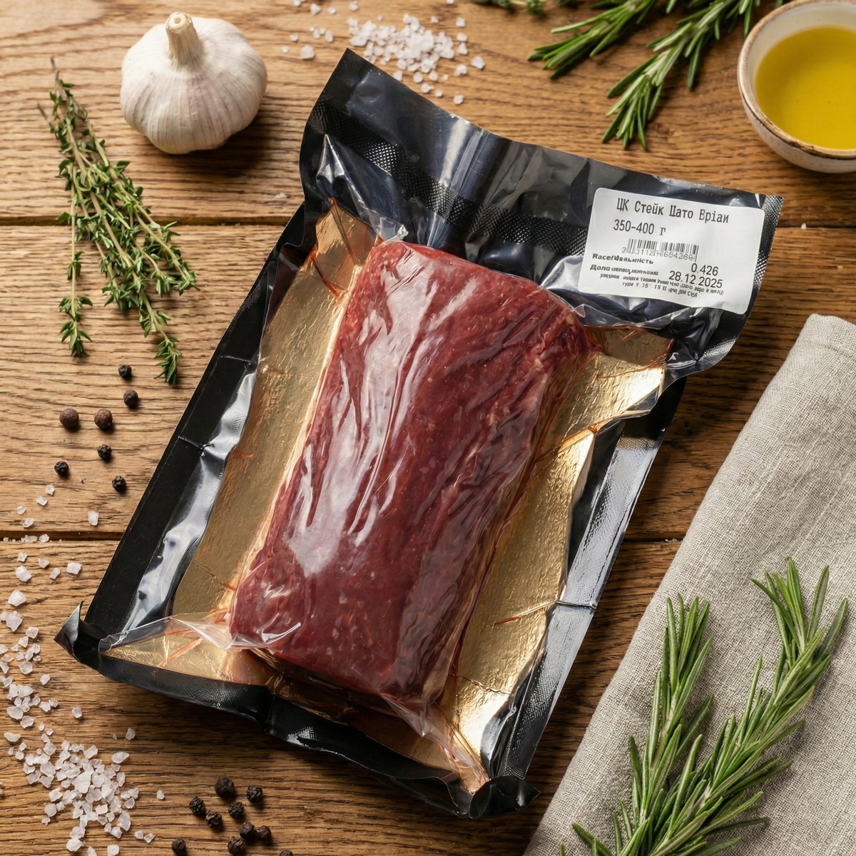 Оскільки вирізка від природи має мінімальний рівень жиру, ми застосовуємо технологію професійної вологої витримки (wet-aging). М'ясо дозріває у контрольованому середовищі, що дозволяє ферментам природним шляхом розм'якшити волокна і сформувати чистий, глибокий м'ясний профіль. Це саме той насичений смак, який неможливо знайти на полицях звичайних супермаркетів.